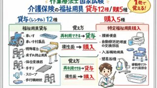 【作業療法士国家試験対策】介護保険の福祉用具まとめ|貸与12種・購入5種を一発で覚える図解