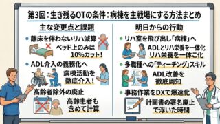 【2026年最新】作業療法士が2026年診療報酬改定を生き抜くための戦略を現役OTが徹底解説!「離床減算」をチャンスに変え、リハ室を飛び出して病棟で価値を発揮する具体的な方法とは?時代に取り残されたくないOT必見のバイブル。
