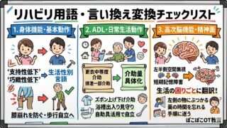臨床 【例文付】リハビリ用語の言い換えリスト|新人作業療法士が家族・多職種に100%伝えるコツ