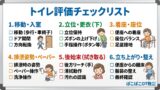 | セルフケア(ADL) | 身の回りの動作 | 食事、トイレ、着替え、お風呂など毎日行う生活の動き |