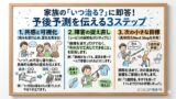 ご家族の表情をパッと明るくし、信頼関係を深めるには、以下の3ステップで話すのが鉄則です 。